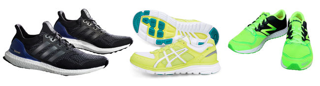 아디다스 부스트 러닝화. 아래 사진 왼쪽부터 아디다스, 아식스, 뉴발란스. 맨 아래 사진은 왼쪽부터 K2, 밀레, 라푸마.