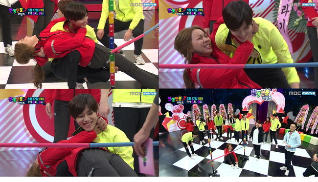 입술로 종이 하트를 옮기던 문희준과 후지이 미나는 하트가 떨어지며 순식간에 입술이 닿으며 키스를 하게 되었고, 두 사람의 아찔한 키스 장면에 지켜보던 모든 출연자들은 물론 현장의 스텝들까지 숨을 죽이고 말았다고. 예상치 못한 키스에 얼굴이 빨개진 두 사람은 부끄러움에 눈도 못 마주쳤지만 내심 싫지만은 않은 눈치였다는 후문이다.