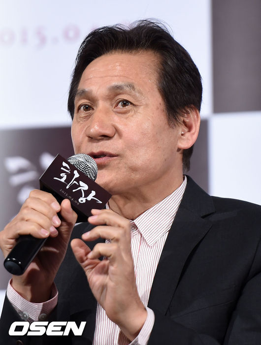 배우 안성기가 취재진의 질문에 답하고 있다.