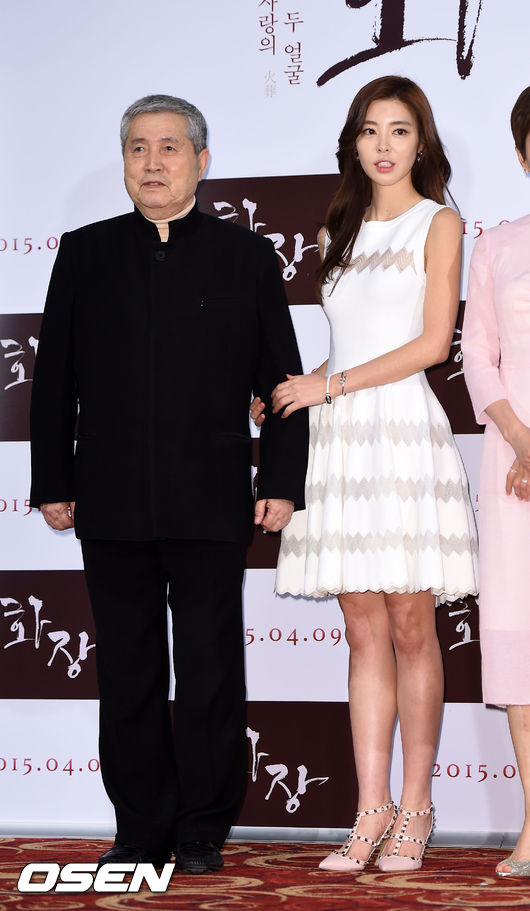 임권택 감독과 배우 김규리가 포토타임을 갖고 있다.