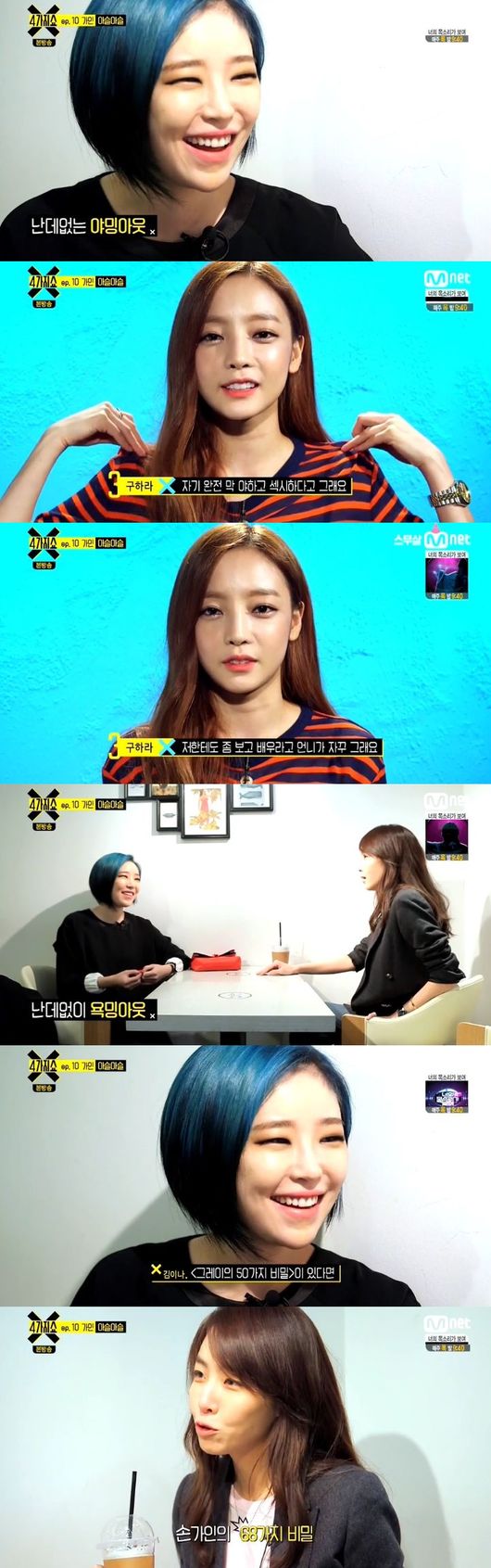 이어진 인터뷰에서 구하라는 "(가인이) 자기가 완전 막 야하고 섹시하다고 그런다. 나한테도 좀 보고 배우라고 언니가 자꾸 그런다"고 둘 만의 이야기를 전했다.