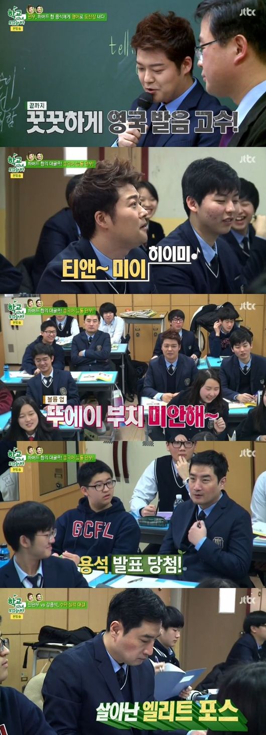 하버드대 출신의 강용석은 자연스러운 영어로 발표했고, 연대 출신의 전현무는 영국식 발음으로 발표를 펼쳐 학생들의 감탄사를 자아냈다. 이어진 중국어 수업은 전현무의 독주였다. 전현무는 중국어를 전혀 모르는 강용석의 당황함을 보며 즐거워했다.