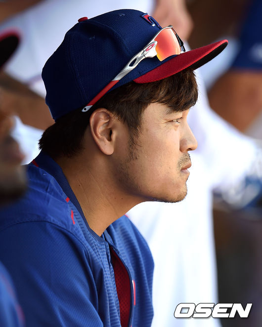 텍사스 추신수가 더그아웃에 앉아 경기를 지켜고 있다. / youngrae@osen.co.kr