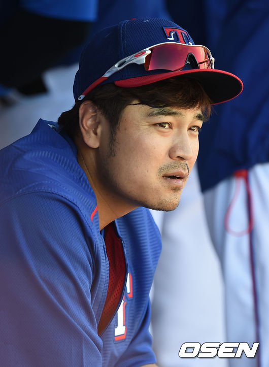 텍사스 추신수가 더그아웃에 앉아 경기를 지켜보고 있다. / youngrae@osen.co.kr