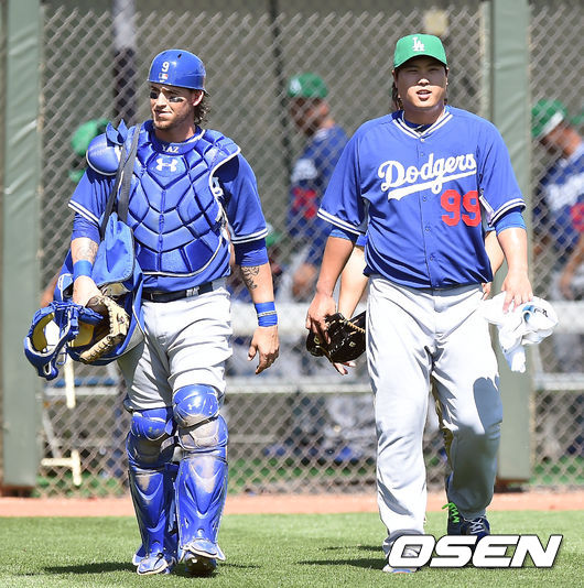 류현진과 그랜달이 더그아웃으로 들어오고 있다. / youngrae@osen.co.kr