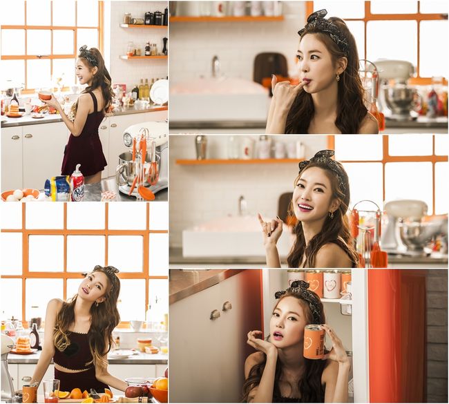 공개된 사진 속 NS윤지는 오렌지 컬러의 상큼한 주방을 배경으로 웨이브가 있는 긴 머리카락을 늘어뜨리고 있다. 복부 가 살짝 노출되는 짙은 자줏빛 컬러의 원피스를 입은 채 남자친구를 위한 음식 만들기에 빠져 있는 모습이다.