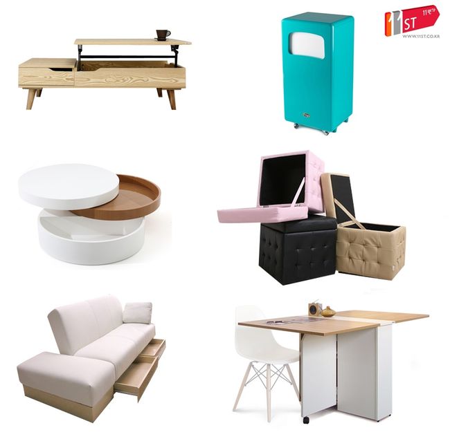 이밖에 거울, 수납대, 의자 등을 하나로 묶은 ’접이식 화장대’, 침대와 책상이 합쳐진 ‘벙커 침대’, 상판을 열면 수납공간이 있는 ‘수납형 의자’, 사다리에 선반, 의자 기능을 더한 ‘사다리 선반’ 등 이색 제품도 반응이 좋다.