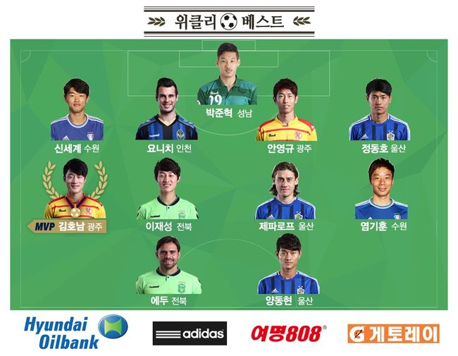 김호남(광주)이 현대오일뱅크 K리그 클래식 2015 2라운드 베스트에 선정됐다.
