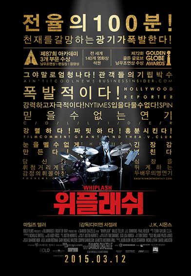‘위플래쉬’는 2015년 아카데미 시상식 3관왕을 비롯해 전 세계 영화제에서 140여 개의 상을 휩쓸었다.