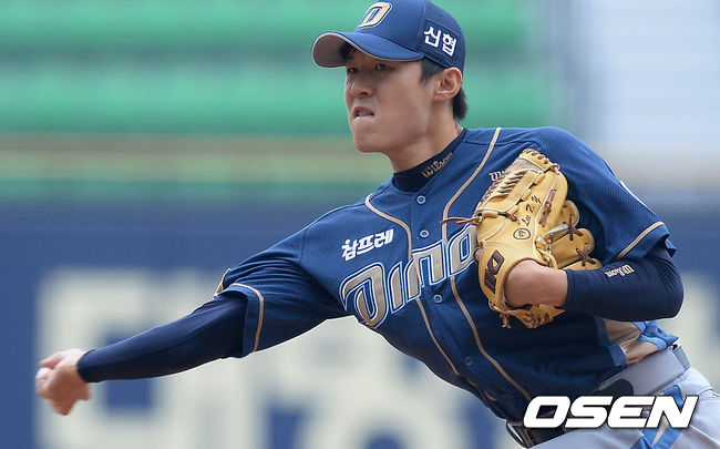 1회말 NC 선발투수 이태양이 힘차게 공을 던지고 있다.