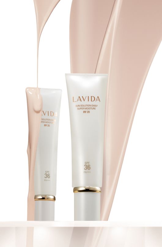 신제품 라비다 선솔루션 데일리 슈퍼 모이스처는 적외선과 자외선으로부터 피부를 보호하고 하이드레이팅 쉴드 콤플렉스 기술을 통해 수분을 채워주는 제품으로 '자물쇠 선크림' 이라는 애칭을 가지고 있다.