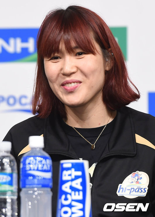 18일 오후 서울 청담동 호텔리베라에서 열린 NH농협 2014-2015 V-리그 포스트시즌 미디어데이에서 도로공사 정대영이 미소를 짓고 있다.