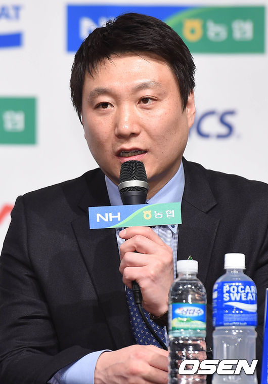 18일 오후 서울 청담동 호텔리베라에서 열린 NH농협 2014-2015 V-리그 포스트시즌 미디어데이에서 현대건설 양철호 감독이 인사말을 하고 있다.