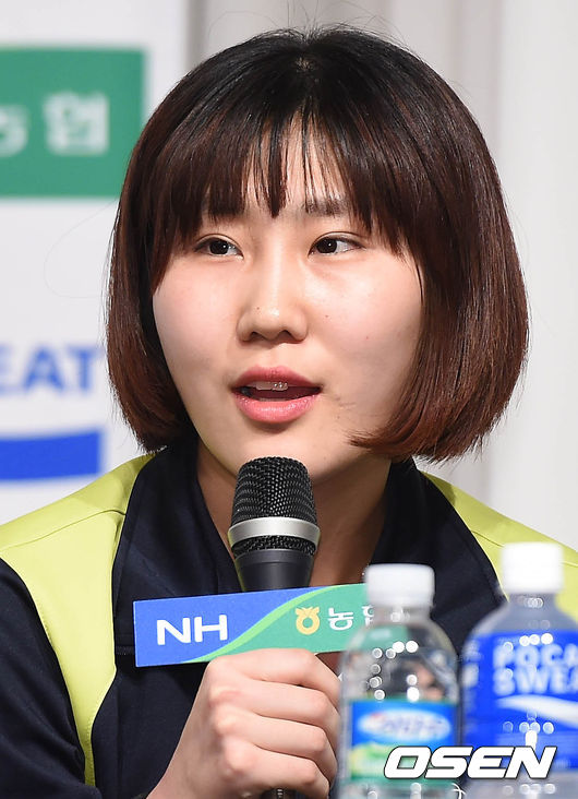 18일 오후 서울 청담동 호텔리베라에서 열린 NH농협 2014-2015 V-리그 포스트시즌 미디어데이에서 현대건설 염혜선이 인사말을 하고 있다.