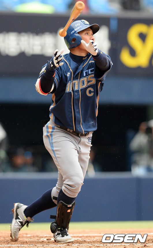 5회초 무사 주자 3루, NC 이종욱이 1타점 적시타를 치고 있다.