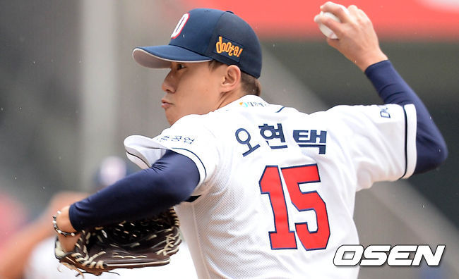 4회초 두산 유희관에 이어 마운드에 오른 오현택이 힘차게 공을 던지고 있다.