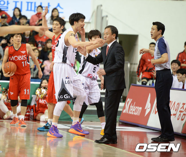 3쿼터 LG 김종규가 판정에 불만을 나타내고 있다.