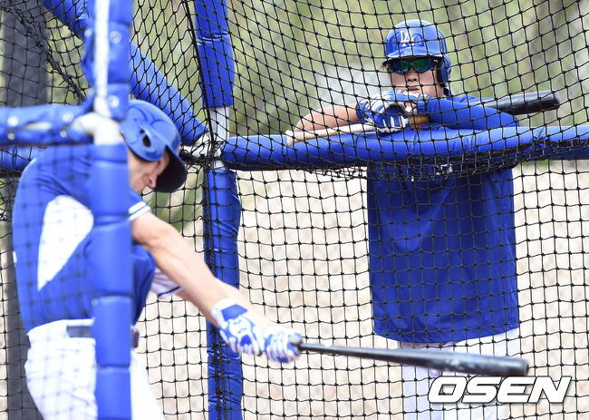 류현진이 커쇼의 프리배팅을 지켜보고 있다.