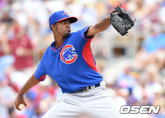 시카고 컵스 C.J 에드워드가 역투하고 있다.