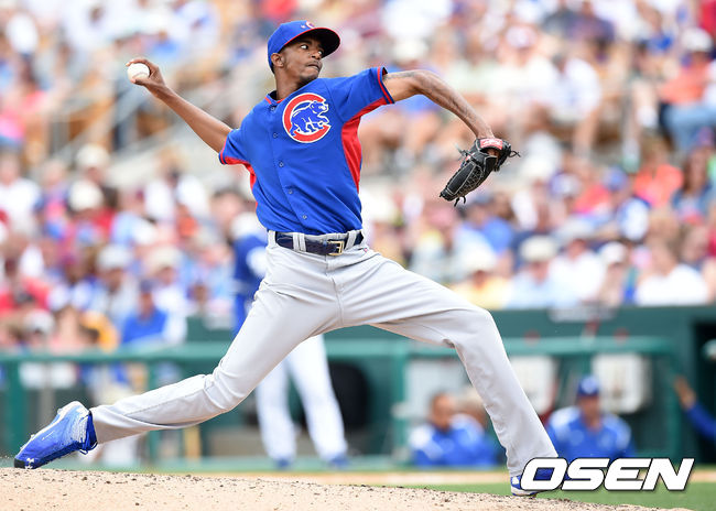 시카고 컵스 C.J 에드워드가 역투하고 있다.