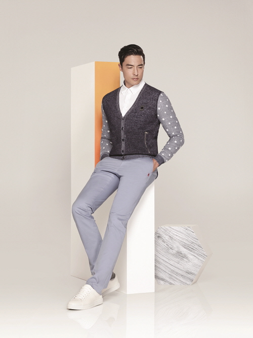 편안하게 착용할 수 있는 카디건도 배 나온 남성 골퍼들의 체형 결점을 보완하기에는 제격이다. '브이넥 베색 카디건'은 앞을 V자로 튼 형태에 지퍼 대신 단추가 달려 있어 어드레스나 어프로치자세를 취할 때에도 겹친 뱃살이 도드라져 보이지 않는다. 또한 양팔에 프린트된 별 무늬가 시선을 분산해준다.
