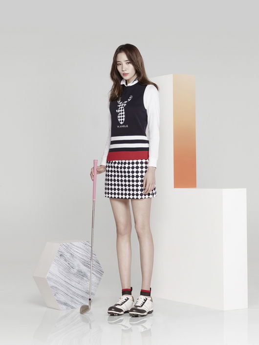 조끼 가슴 부분에 도트(dot) 무늬 형태로 디자인된 사슴 무늬는 독특한 분위기를 연출하며 필드 착용 시, 다른 여성 골퍼들과 차별화된 개성과 스타일을 만들어준다. 특히 전면에 도트(dot) 무늬가 디자인된 '패턴 프린트 큐롯(치마바지)'을 함께 코디하면 통통 튀는 발랄한 느낌을 만들어 평소보다 어려 보이는 효과까지 얻을 수 있다.