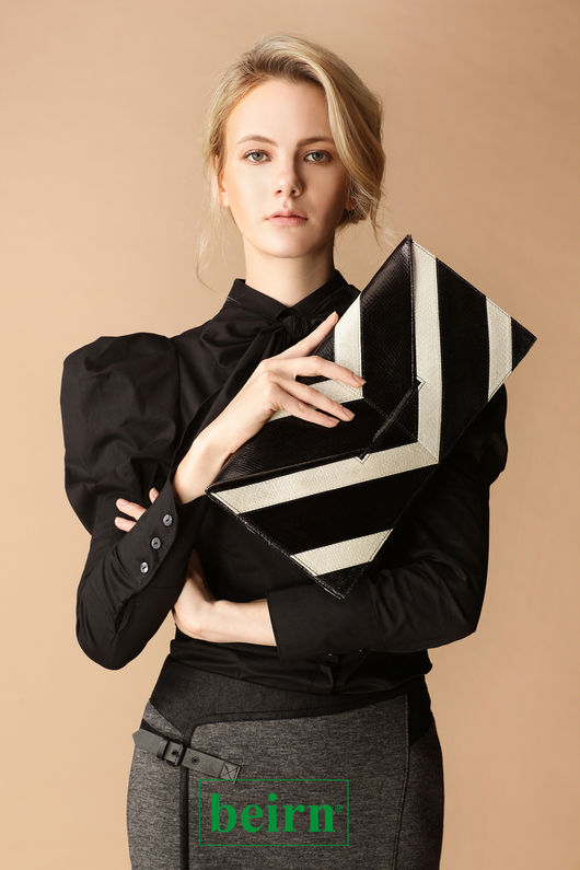 매력적인 디자인과 유니크한 소재의 조화가 여성스러운 페미닌 룩부터 모던한 시티룩까지 다채롭게 연출 가능하도록 도와주는 쉐브론 클러치는, 공식 온라인 쇼핑몰(http://www.beirn.co.kr)과 라움에서 판매 된다.