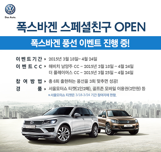 이벤트는 다음달 24일까지 전국 골프존 리얼 및 비전 시스템이 설치된 골프존 매장에서 진행된다. 참가 대상은 골프존 회원이면서 이벤트 참가시 폭스바겐 스페셜 친구에 동의한 회원이다.