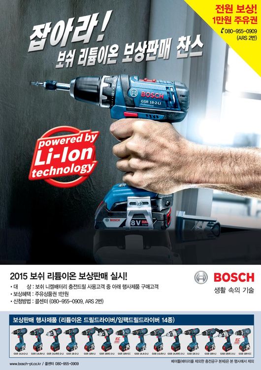 보쉬 전동공구 ‘보쉬 리튬이온 보상판매’ 이벤트 포스터.