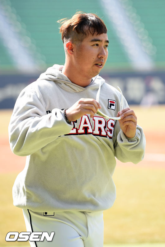 19일 오후 서울 잠실구장에서 열리는 '2015 KBO리그 시범경기' 두산 베어스와 KIA 타이거즈의 경기에 앞서 두산 유희관이 러닝훈련을 하고 있다.