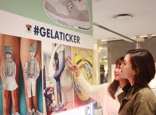 휠라는 운동화 ‘젤라또’ 제품을 스티커 모양으로 만든 ‘젤라티커(젤라또+스티커’)를 매장에서 배포, 젤라티커를 붙인 다양한 모습을 촬영해 #GELATICKER 해시태그와 함께 인스타그램에 게시하는 이벤트를 진행 중이다. 3월 18일 현재 두산베어스 김재호, 민병헌 선수 등 유명인을 포함해 약 1,300여 명이 참여했을 정도로 반응이 뜨겁다.