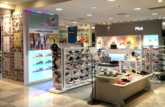 소공동 롯데백화점 본점 휠라 매장 내 설치된 ‘젤라티커 존(Zone)’을 찾은 소비자들의 모습.