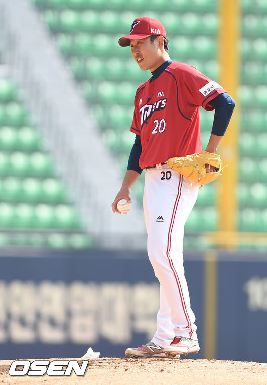 19일 오후 서울 잠실구장에서 열리는 '2015 KBO리그 시범경기' 두산 베어스와 KIA 타이거즈의 경기, 1회말 KIA 선발투수 윤석민이 실점 후 아쉬워하고 있다.