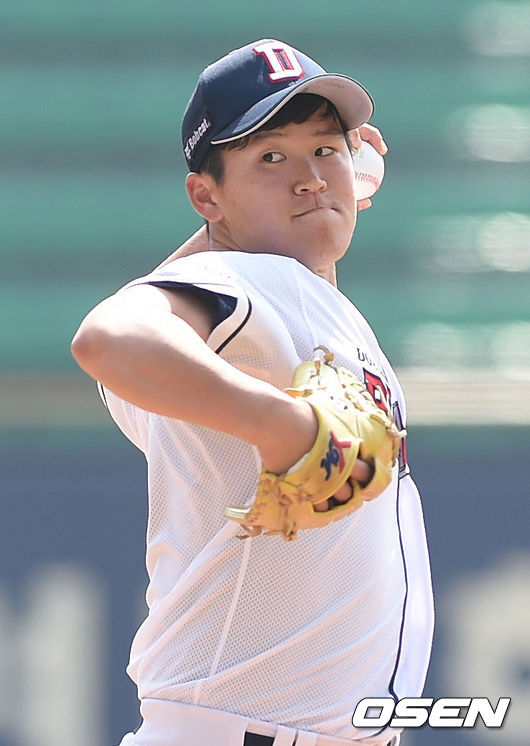 19일 오후 서울 잠실구장에서 열리는 '2015 KBO리그 시범경기' 두산 베어스와 KIA 타이거즈의 경기, 1회초 두산 선발투수 진야곱이 역투하고 있다