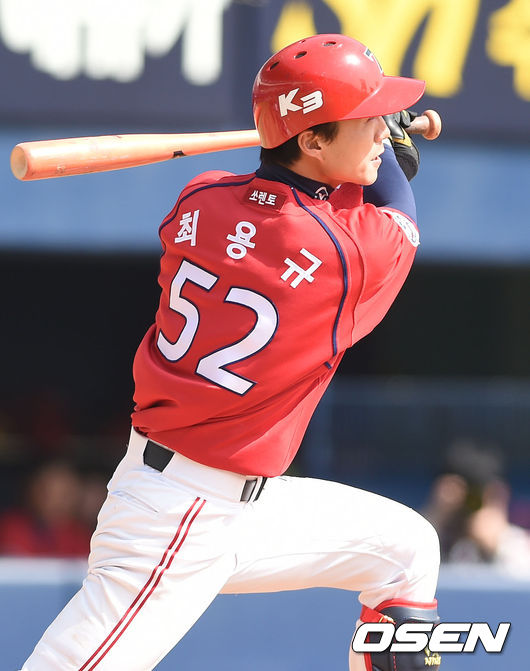 19일 오후 서울 잠실구장에서 열리는 '2015 KBO리그 시범경기' 두산 베어스와 KIA 타이거즈의 경기, 4회초 1사 만루 KIA 최용규가 1타점 희생플라이 타구를 날리고 있다.