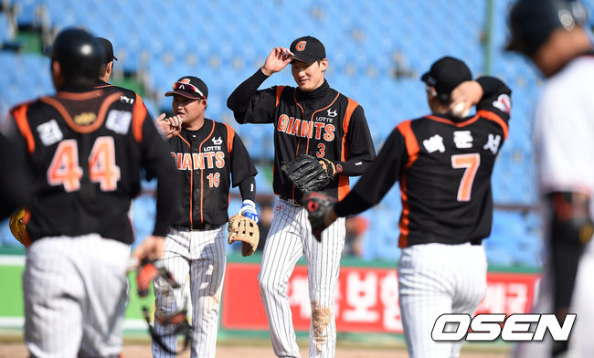 경기후 롯데 선수들이 승리를 기뻐하고 있다./jpnews@osen.co.kr