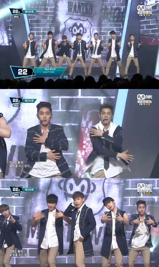 매드타운은 19일 방송된 Mnet '엠카운트다운'에서 '드루와' 무대를 선보였다.