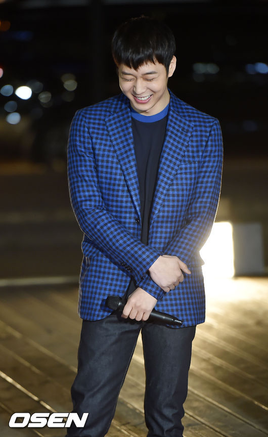 박유천이 무대 위에서 환하게 웃고 있다.