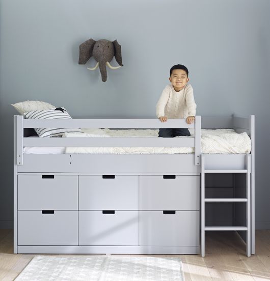 까사미아 관계자는 “미드하이 침대는 공간 및 자녀 수에 따라 다양한 구성이 가능하여 최근 국내 키즈 가구업계에서 트렌드로 떠오르고 있다. 경우에 따라 침대의 하부 공간을 놀이∙학습∙수납의 공간으로 활용하거나 토퍼 매트리스를 바닥에 깔아 별도의 수면 공간으로 꾸밀 수도 있기 때문”이라고 설명했다.
