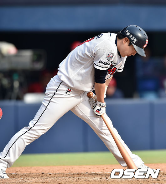 9회말 1사 주자 1,2루 두산 박건우가 타석에서 삼진 아웃을 당한 후 아쉬워하고 있다./ rumi@osen.co.kr