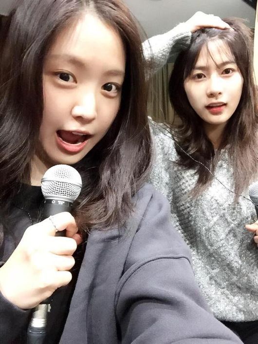 공개된 사진 속에는 나란히 서서 카메라를 향해 깜찍한 표정을 짓고 있는 손나은과 오하영의