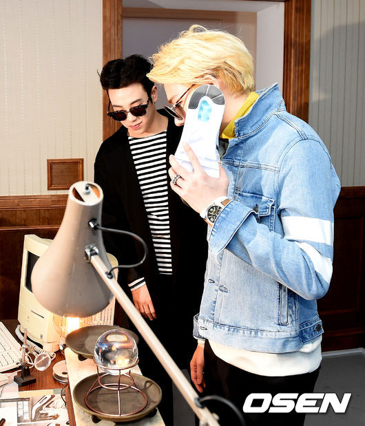 블락비 피오, 지코가 나이키의 전설적인 디자이너인 팅커 햇필드의 작업실을 재현한 전시실을 둘러보고 있다.