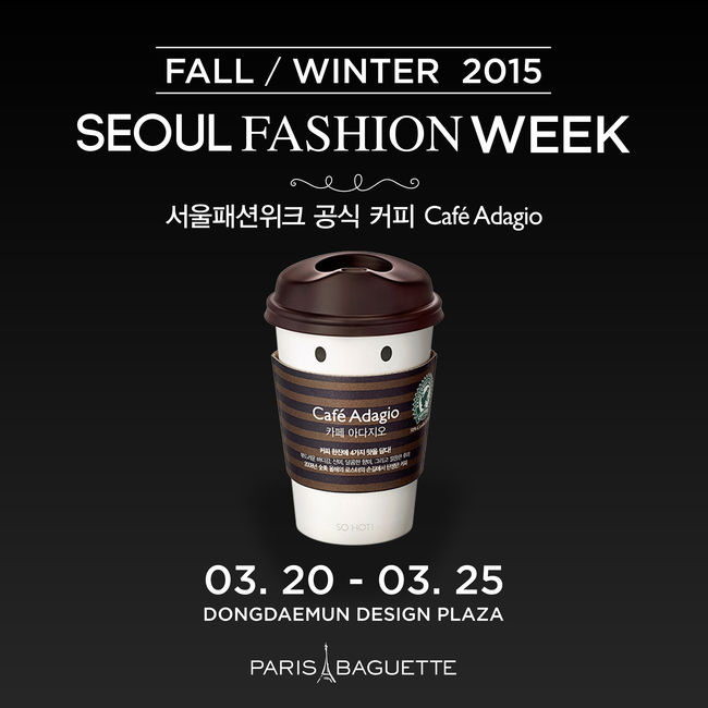 ㈜파리크라상의 대표브랜드 파리바게뜨가 선보인 카페 아다지오가 오는 25일까지 동대문 DDP 외 미래로다리 특설관, 국제회의장 등에서 열리는 '2015 F/W 서울패션위크'의 공식커피로 선정됐다고 20일 밝혔다.