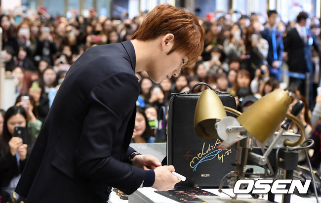 행사에 참석한 김재중이 직접 이니셜을 각인하고 있다.