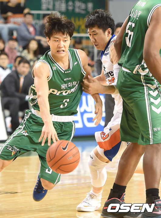 3쿼터, 동부 허웅이 전자랜드 정영삼 수비를 뚫고 있다.
