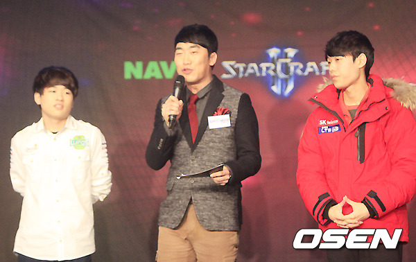 2년 만에 우승을 노리는 조성주(진에어)와 테란 명가의 계보를 이을 조중혁(SK텔레콤)이 21일 오후 서울 서초 강남 넥슨아레나에서 열리는 '네이버 스타크래프트2 스타리그' 초대 챔피언이자 '절대 반지' 주인공 자리를 놓고 맞대결을 펼친다. 성승헌 캐스터가 조성주와 조중혁과 함께 경기전 사전 인터뷰를 진행하고 있다.