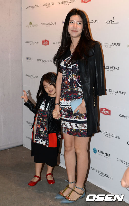배우 이윤미와 딸 주아리 양이 포토타임을 갖고 있다.