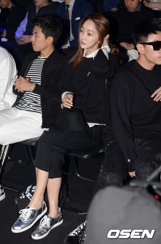 배우 장수원과 서효림이 패션쇼를 기다리고 있다.