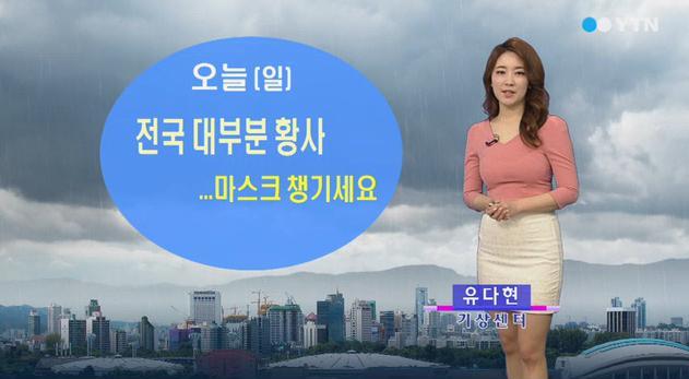 영남을 제외하고 대부분 지역에 황사가 일고 있다. 미세먼지 농도는 대부분 ‘나쁨’ 단계를 보이고 있다. 외출 시 황사마스크 등을 착용해야 한다.
