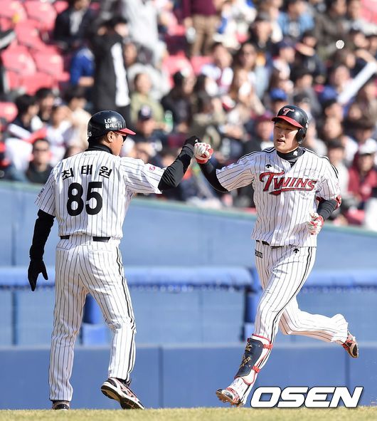 LG는 22일 잠실구장에서 열린 ‘2015 타이어뱅크 KBO 리그’ 두산과의 시범경기에서 4회말 3점, 5회말 5점을 뽑은 타선의 힘을 앞세워 10-7로 재역전승을 거뒀다. 7승 5패가 된 LG는 롯데와 공동 4위로 시범경기를 마감했다.